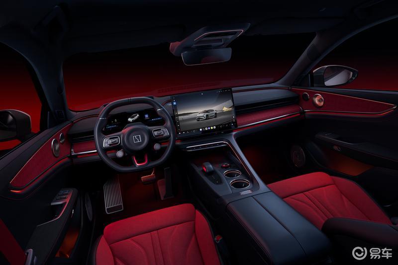外观方面,新车配备了五周年专属红底车标,提供冰川银车身配色搭配撞色车顶,并搭载FR-LINE性能套件,性能金属踏板、FR-LINE迎宾踏板、22英寸暗影黑锻造轮毂、极氪品牌定制倍耐力PZERO高性能轮胎、Brembo六活塞红色卡钳,动感造型,视觉张力与个性拉满,区分常规版本视觉特征。
